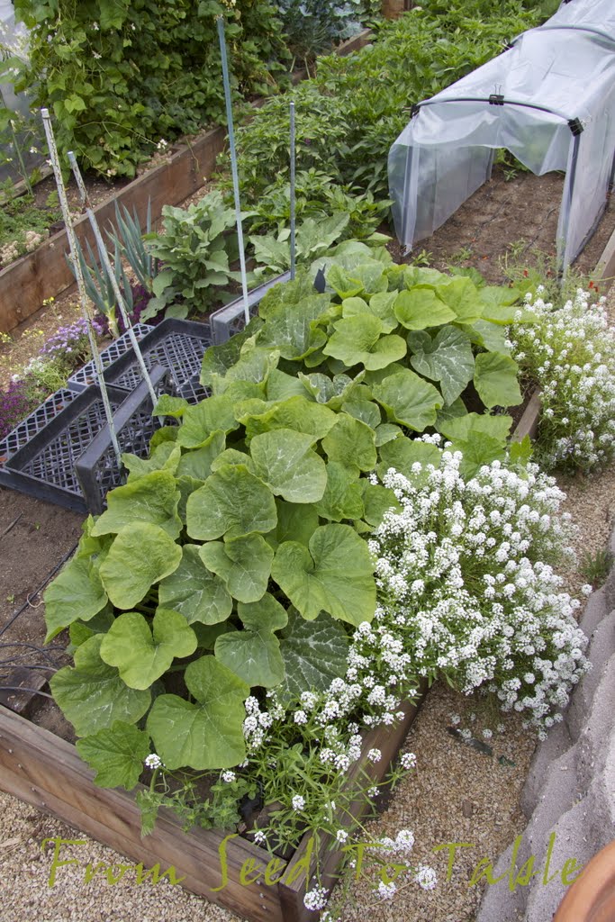 A look down on that corner of the garden. I'm going to allow the squash to take over the path in this corner of the garden. I keep directing the vines away from the other parts of the garden.