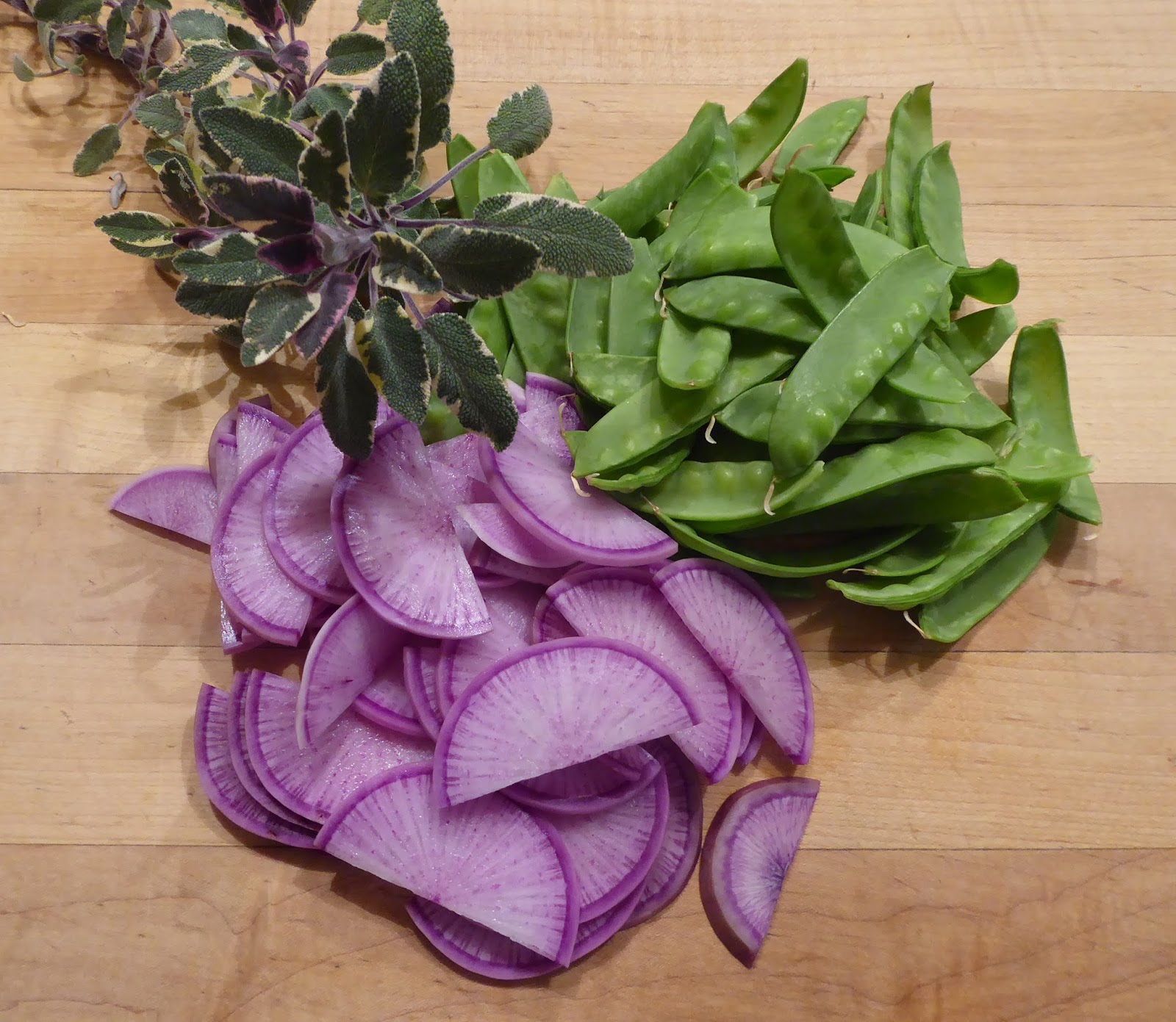 Across the way the frost tolerant Frieda Worlds snow peas were also unfazed, both the plants and pea pods are just fine.